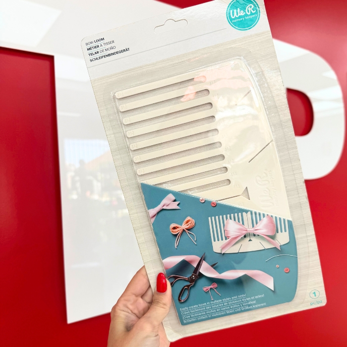 A ferramenta para criar laços da We R Memory Keepers foi desenvolvida para facilitar o processo de montagem, permitindo criar laços de diferentes tamanhos e estilos com rapidez e precisão.