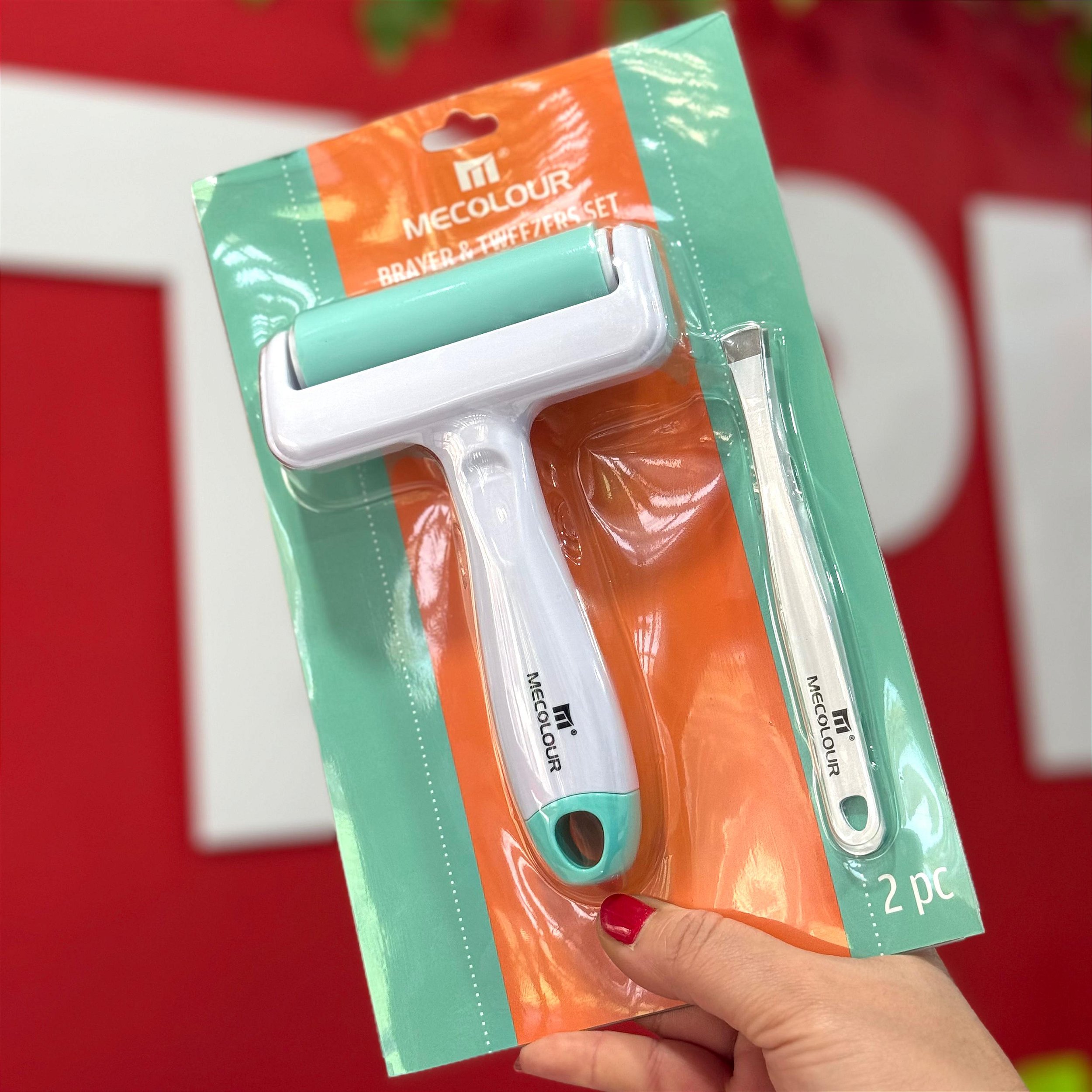 O kit Brayer & Pinça Mecolour foi desenvolvido para oferecer mais praticidade e precisão em trabalhos de recorte de vinil, papel adesivo e outros materiais de personalização. Composto por um rolo aplicador e uma pinça de ponta chanfrada, é o conjunto ideal para quem busca acabamento profissional.