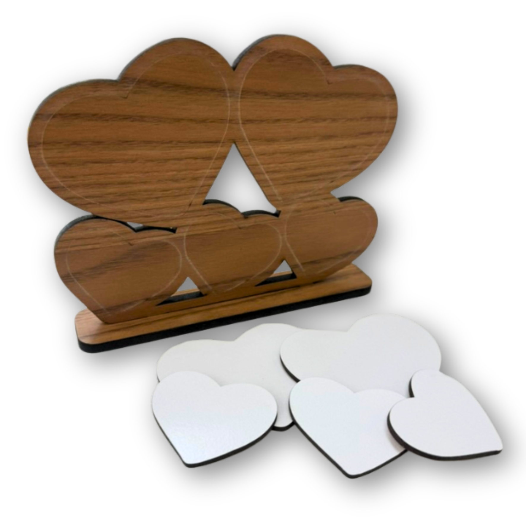 O porta-retrato de corações em MDF é perfeito para quem quer trabalhar com presentes personalizados que realmente encantam. Com design diferenciado e múltiplas peças, permite criar composições únicas, aumentando o valor percebido e o ticket da venda.