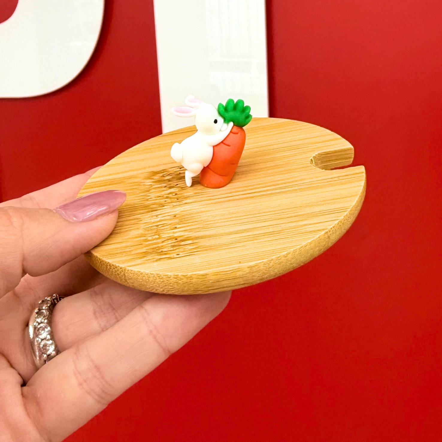 Valorize ainda mais suas canecas com a tampa de bambu com puxador em formato de coelho. Um acessório funcional e com forte apelo visual, ideal para criar produtos mais completos e atrativos para venda.